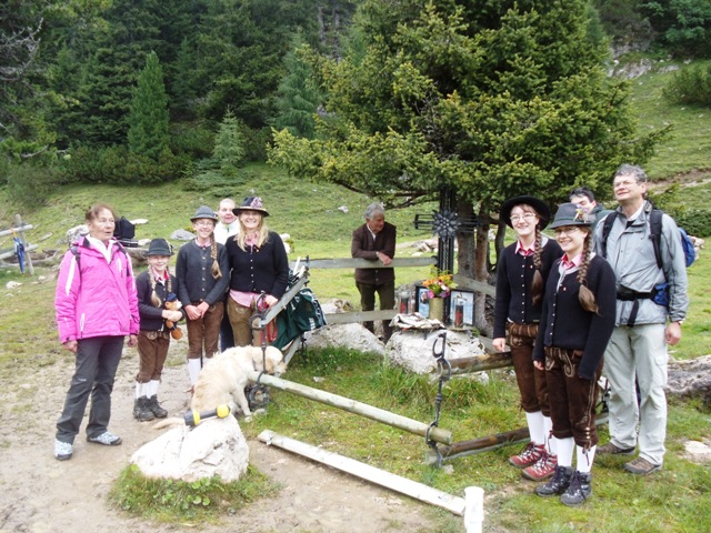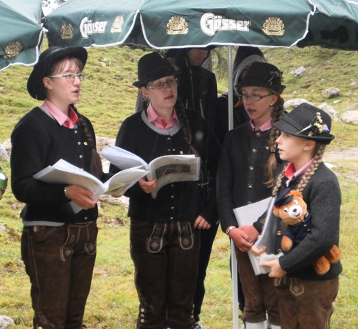 Ein kalter, nebelverhangener Augustmorgen, hätte auch zum November gepasst! Treffpunkt mit der Gruppe „Blindenfreizeiten Pater Lutz“ war die Rofanbahn in Eben am Achensee. Mit einem kleinen Teil unserer Instrumente (Steirische und Gitarre) fuhren wir mit der Rofanbahn bergwärts. Dann marschierten wir tapfer zu unserem Ziel, wo wir trotz des schlechten Wetters belohnt wurden: