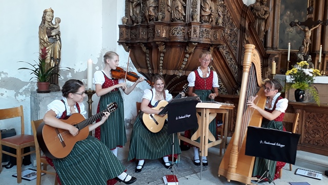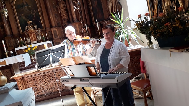 Musikalisch umrahmt wurde der Gottesdienst in der gotisch-barocken Klosterkirche samt Kräutersegnung an der Orgel von Gabriele Ladstätter, an der Geige, Detlev Ladstätter aus Magdeburg und uns, der Familienmusik Rohregger aus Brandenberg in Tirol.