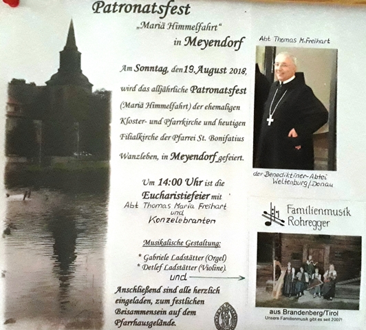 Am 19. August 2018 umrahmten wir in der Filialkirche, ehemalige Pfarr- und Klosterkirche, Meyendorf der Pfarrei St. Bonifatius Wanzleben im Bistum Magdeburg das Patronatsfest (Maria Himmelfahrt).