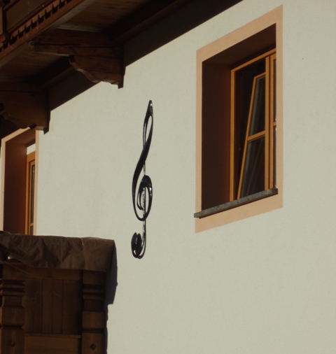 Am 01. Februar war es dann soweit. Papa und Opa machten sich zusammen daran, unter unseren kritischen Blicken, den schwarzen Notenschlüssel (Länge 120cm, Breite ca. 50 cm) an der Fassade unseres Hauses zu befestigen.