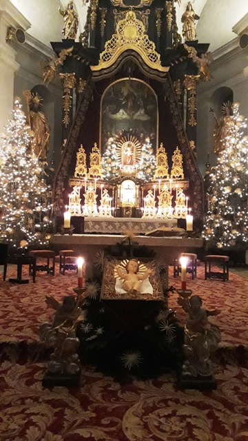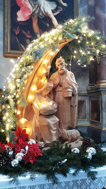 In der Basilika Mariathal wurde auch ein Festgottesdienst an diesem Marienhochfest mit Pfarrprovisor Mag. Martin Schmid, Bruder Florian Heel und Diakon Andreas Moser gefeiert. Die wunderschön, weihnachtlich geschmückte Basilika war bis auf den letzten Platz gefüllt!! Zum krönenden Abschluß sangen wir mit den Messbesuchern „Stille Nacht, Heilige Nacht“ in der verdunkelten, nur mit Kerzen beleuchteten Pfarrkirche. Welch eine besondere Stimmung!! Eine Messbesucherin schrieb uns: „Es war ein Genuss euch zuzuhören. Mann kann nicht sagen was schöner war. Die Geige, die Harfe oder die klaren Stimmen.“