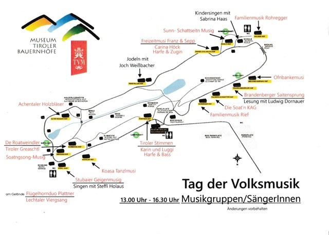 Bei optimalem Ausflugswetter – Sonne und Wolken – nicht zu heiß (die paar Regenspritzer machten nur eine gute, frische Luft!!) – fanden sich zahlreiche volksmusikinteressierte Besucher im Museum Tiroler Bauernhöfe in Kramsach ein, um den insgesamt 18 Volksmusikgruppen, in den verschiedenen Höfen zuzuhören. Daneben konnten die Volksmusikfreunde aus nah und fern sich im Jodeln mit Joch Weißbacher und im Singen mit Steffi Holaus und Sabrina Haas üben. Auch Ludwig Dornauer trug mit seiner markanten Stimme einige seiner Texte vor.