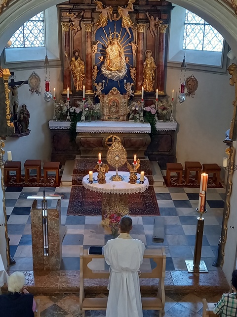 Am 27. Juni 2021 wanderten wir wieder nach einjähriger Pause aufgrund von Corona mit einem Teil unserer Instrumente „huckepack“ hinauf zur Wallfahrtskriche Maria Brettfall und gestalteten dort eine sehr besinnliche Heilige Messe. ……