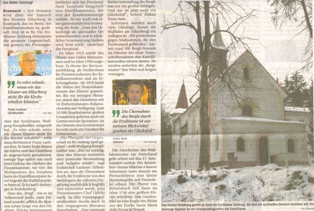 Die Erzdiözese Salzburg übernimmt das Kloster Hilaribergl in Kramsach!