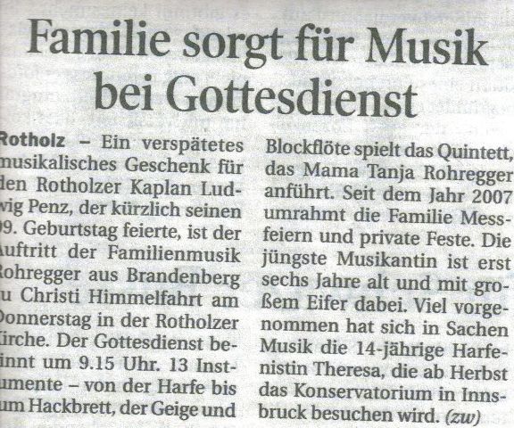 Am Donnerstag, den 17.05.2012, zu Christi Himmelfahrt, gestalteten wir anlässlich des 99igsten Geburtstages von Kaplan Ludwig Penz die Heilige Messe in der Kirche Rotholz…..
