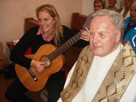 Nach dem Schlusssegen sangen wir mit den Gläubigen „unserem“ Pater Josef ein Geburtstagsständchen!