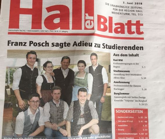 Am 17. Mai 2018 fand „Ein Fest für Franz“ zu Ehren und Verabschiedung von Dr. Franz Posch nach seiner langjährigen Lehrtätigkeit am Tiroler Landeskonservatorium am Reschenhof in Mils statt.