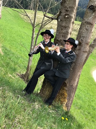Also formierten sich die beiden Kapellmeisterinnen der BMK Mariatal, Theresa und Magdalena Rohregger, zu einem privaten Maiblasen in Form eines Fotoshootings. Der Auftrag an alle 63 aktiven Musikant*innen war es, einen Marsch von zuhause aus zu spielen und dabei ein Lichtbild anzufertigen, um der jährlichen Tradition zu trotzen!