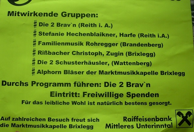 Am Sonntag, den 02. September 2012 fand beim Festplatz Mühlbichl in Brixlegg, veranstaltet von der Marktmusikkapelle Brixlegg, ein Volksmusiknachmittag unter dem Motto „WÜNSCH´ DA WOS“ (angelehnt an die „Mei liabste Weis“ bekannt aus dem ORF mit Franz Posch) statt.