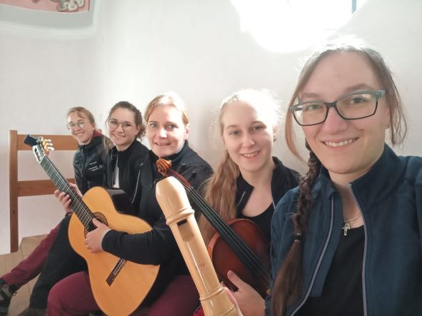 Natürlich fehlten unsere beiden Hunde, Leila und Rosa, nicht bei dieser Wallfahrt. Auch einen Teil unserer Instrumente trugen wir wieder hinauf zur Kapelle. Es war wieder eine wunderschöne, besinnliche Wallfahrt.